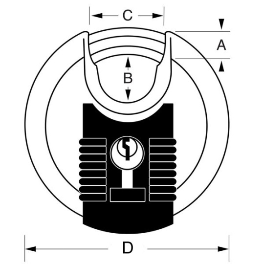 - Visací zámok šírky 70 mm s telom z nerezovej ocele odolným voči korózii.