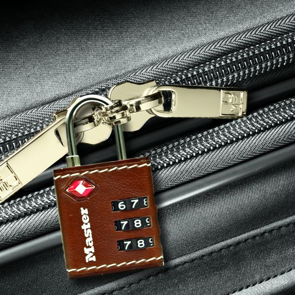 Visací kombinačný zámok o šírke 32 mm pre zavazadlá, schválený agentúrou TSA, má elegantný kožený dizajn. Kovové telo zámku je odolné voči poškodeniu. Tŕň je z ocele o priemere 3 mm a je odolný voči prestrihnutiu a presekaniu. Obsahuje nastaviteľnú 3-cifernú kombináciu zámku.