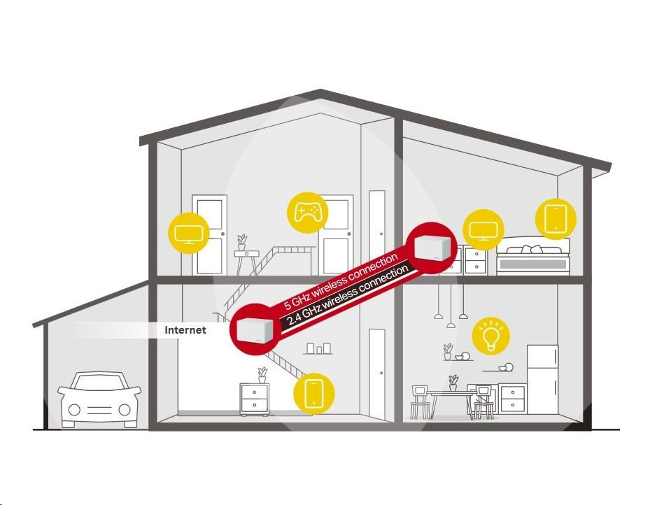 - Pokrytie celej domácnosti – pokrytie priestoru až 650 m2 vysokorýchlostnou sieťou Wi-Fi, ktorá eliminuje mŕtve zóny Wi-Fi pokrytia vo vašej domácnosti.