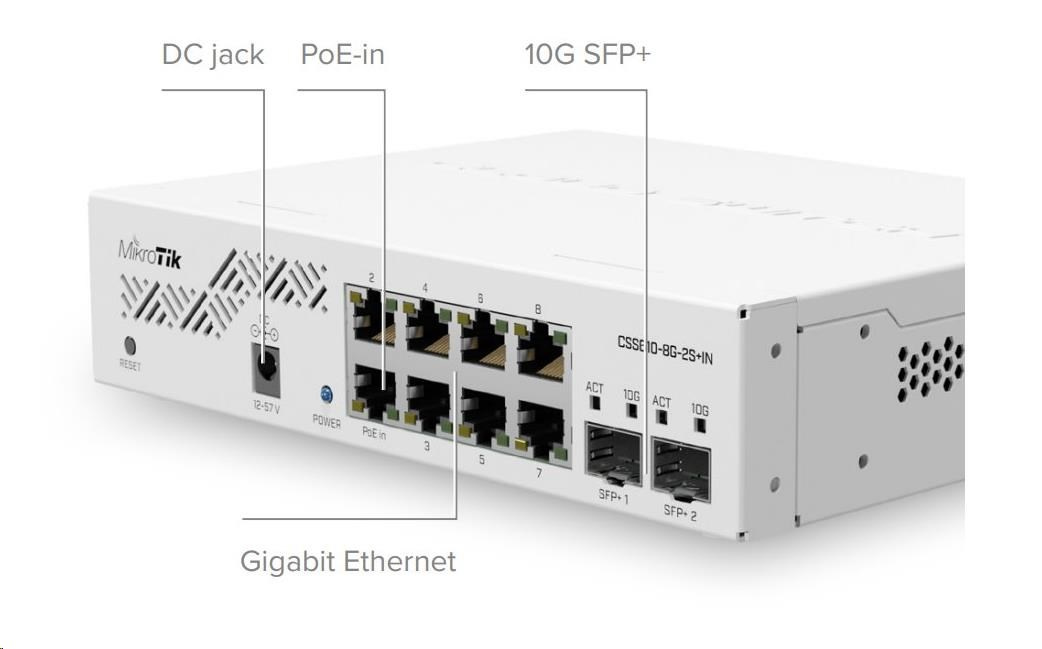 MikroTik Cloud Smart Switch CSS610-8G-2S+IN, 8 gigabitov.porty, PoE-In, 2xSFP+, SwOS