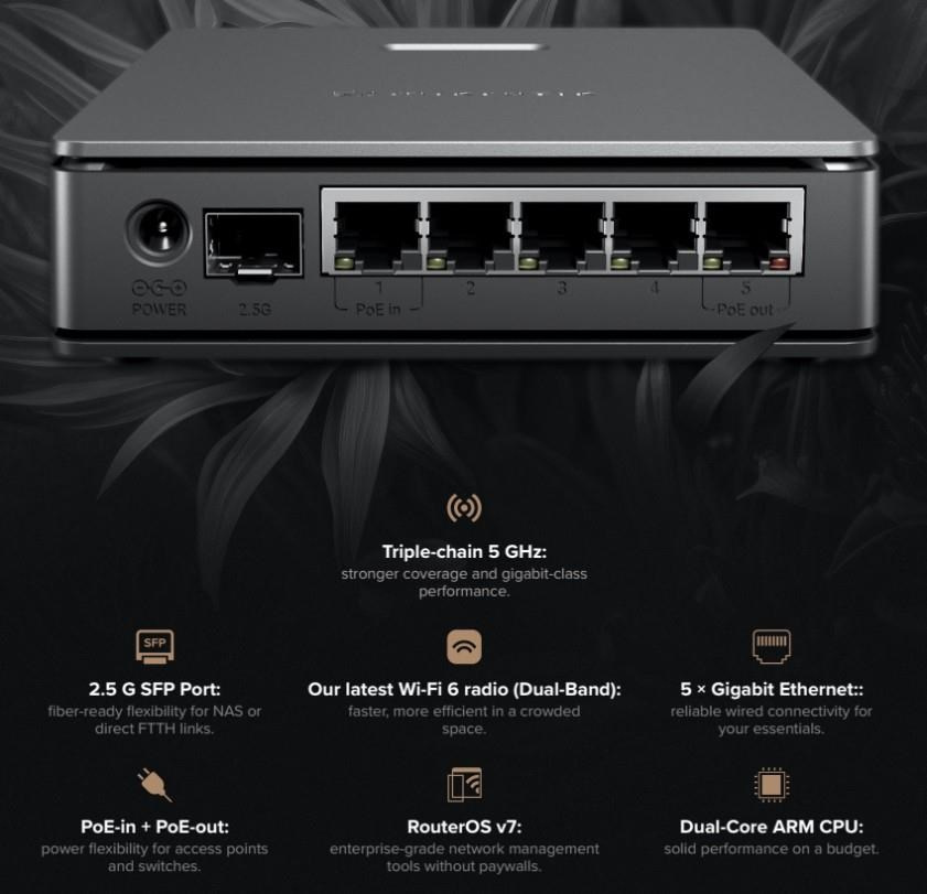 MikroTik E62iUGS-2axD5axT 2,4/5GHz WiFi 6 router hAP ax S