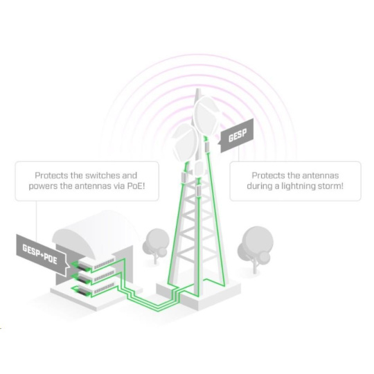GESP+POE-IN je pasívny gigabitový injektor PoE s integrovanou prepäťovou ochranou Ethernetu na ochranu proti prepätiu s jedným ethernetovým portom na druhej strane vedeným káblom s konektorom RJ45 a uzemňovacím káblom ukončeným očkom. Táto verzia je určená na vnútorné použitie na porte prepínača alebo smerovača, ktorý smeruje do vonkajšej jednotky CPE.