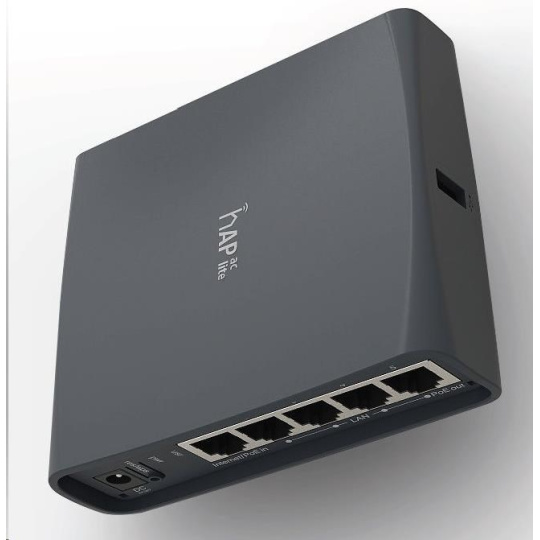 hAP ac lite je nový kompaktný router podporujúci štandard 802.11ac. Je integrovaný ako 2.4GHz a 5GHz Wi-Fi. (2.4GHz používa 802.11b/g/b, dvojitý reťazec 1.5dBi anténa, 300Mbps/5GHz beží na 802.11ac a spätnú kompatibilitu s 802.11a/n., jeden reťazec - 2dBi anténa, 433Mbps). Toto duálne wifi tak dosahuje celkovú prenosovú rýchlosť až 733 Mb/s. Procesor je taktovaný na 650 MHz a podporuje ho 64 MB pamäte DDR RAM. K dispozícii je celkovo päť 100Mb/s ethernetových portov s podporou PoE in (port1) a out (port5).