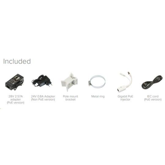 Balenie obsahuje OmniTIK PG-5HacD, injektor PoE, napájací zdroj, montážnu sadu na stožiar