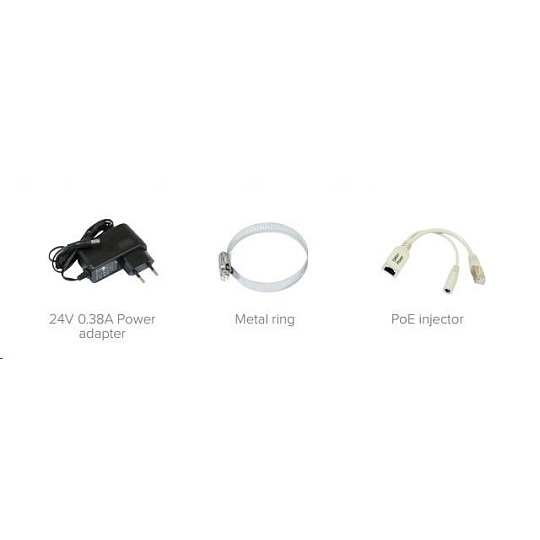 Balenie obsahuje SXTsq Lite2, injektor PoE, napájací zdroj, montážnu sadu na stožiar