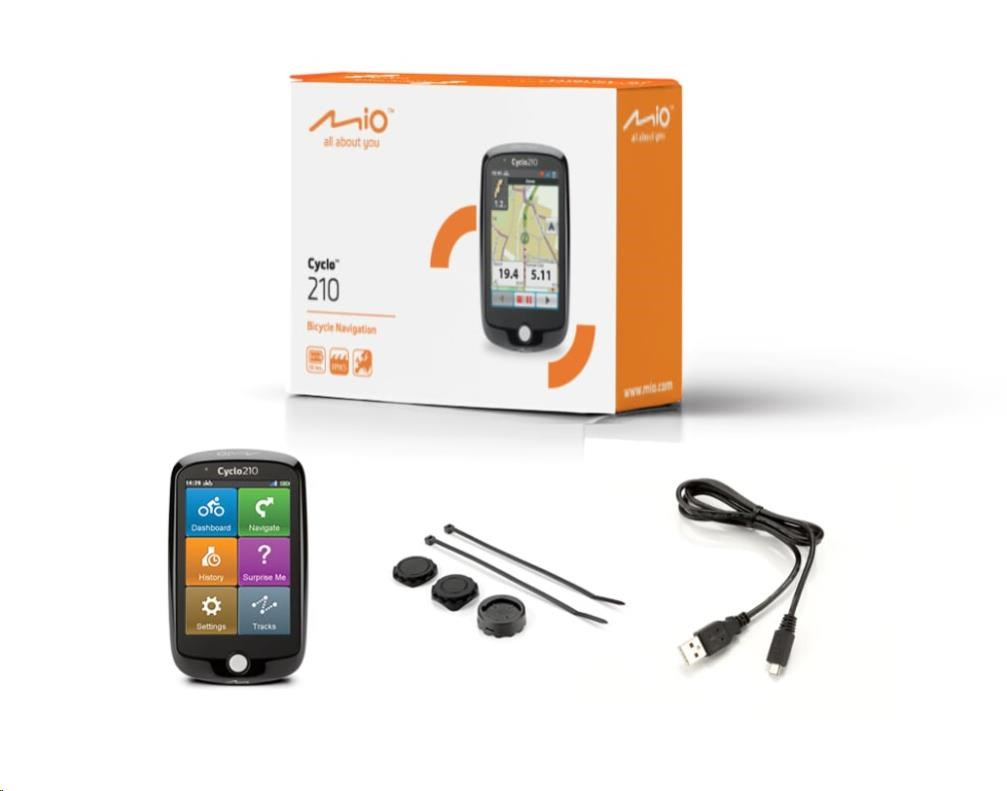 Navigácia na bicykel Cyclo™ 210 má intuitívne rozhranie a je používateľsky komfortná, takže počas niekoľkých minút budete môcť vyraziť na cesty na bicykli.
