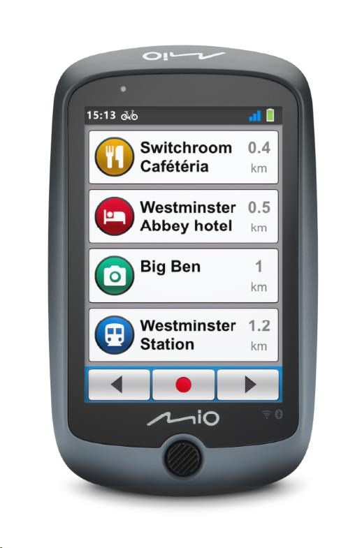Zariadenie Mio Cyclo™ Discover Connect s veľkým 3,5" dotykovým displejom, s jednoduchou štruktúrou ponuky a prehľadnými obrazovkovými tlačidlami zabezpečuje naozaj ľahké používanie.