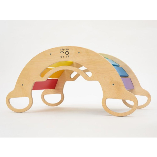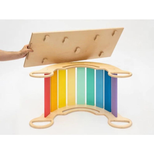 # Drevené detské Montessori hojdačka smile 6in1 vás prekvapí svojim dizajnom aj multifunkčnosťou. Hojdačka bude každý deň svojím širokým úsmevom lákať deti k príjemnému hojdaniu aj k zábavnej hre. Jej využitie je všestranné, môže byť hojdačkou, šmýkačkou, lezeckou, skrýšou aj sedačkou, pri doplnení obojstranným doskou aj detským nábytkom. Obojstranná doska nie je súčasťou hojdačky. Vďaka sviežim fresh farbám rozžiari každý detský interiér. Vyrobená je z tých najkvalitnejších materiálov, ručne dôkladne opracovaná a lakovaná farbami s atestom. Montessori hojdačka smile je širšia ako naše Montessori hojdačky 5in1, preto k tejto hojdačke ponúkame aj špeciálnu obojstrannú dosku, ktorá je doplnkom ku hojdačkám smile. Vďaka doske ľahko premeníte hojdačku smile na detský stolík. Obojstranná doska nie je súčasťou hojdačky, na využitie hojdačky ako nábytku je nutné dosku samostatne dokúpiť.