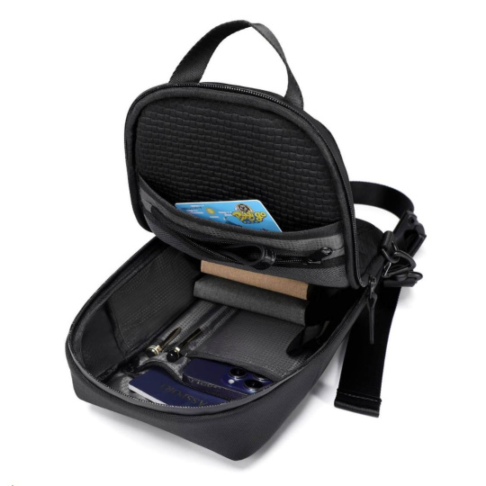 MYBALO ASTON Perfektní volba pro minimalisty s dobrým vkusem 6 ikon: - Nejtenčí batoh - Elegantní - Kapsa na notebook do 15,6" - Kapsa na tablet do 9" - Otevírání o 180 stupňů - USB a USB-C port - Drží tvar - Voděodolný - Skryté kapsy Elegantní a minimalistický Jedná se o velmi elegantní a minimalistický batoh. S tímto parťákem neuděláte chybu při běžném nošení do města, ani na důležité schůzce. Tenký batoh MYBALO Aston je batoh s vůbec nejmenší hloubkou z naší nabídky. Díky tomu působí elegantně a minimalisticky, ale i přesto se do něj vejdou všechny vaše nezbytnosti. Kvalitní voděodolný materiál, dlouhá životnost Kvalitní umělá kůže zajišťuje trvanlivost a odolnost batohu proti vodě a opotřebení. MYBALO Aston tak bude vaším společníkem opravdu dlouho. Drží tvar Batoh si zachovává svůj tvar také v případě, že jej budete mít úplně prázdný. Vestavěný USB a USB-C port Nabíjejte svá elektronická zařízení kdekoli a kdykoli díky vestavěnému USB a USB-C portu. Popruh k uchycení na kufr Cestujte pohodlně. Kdykoli chcete mít volná záda, jednoduše připevněte batoh na rukojeť svého kufru. Pohodlné polstrování Užijte si komfortní nošení díky kvalitnímu a prodyšnému polstrování ramenních popruhů a zádové části. Další praktické kapsy Zorganizujte si pohodlně a snadno své věci díky množství vychytaných kapes. Skryté kapsy V zádové části a na ramenním popruhu najdete skryté kapsy pro bezpečné uložení cenností. Vnitřní kapsy Vnitřní kapsy slouží pro snadnou organizaci všech vašich věcí. Přední kapsa Přední kapsa je určena pro věci, které chcete mít rychle a snadno po ruce. Parametry: - Rozměry: 46 x 30 x 9 cm - Objem: 11 l - Hmotnost: 1,19 kg - Kapsa na notebook: Ano (do vel. 15,6") - Kapsa na tablet: Ano (do vel. 9") - USB port: Ano - Voděodolnost: Ano - Hlavní materiál: Ekokůže + Polyester - Podšívka: Polyester - Barva: Černá