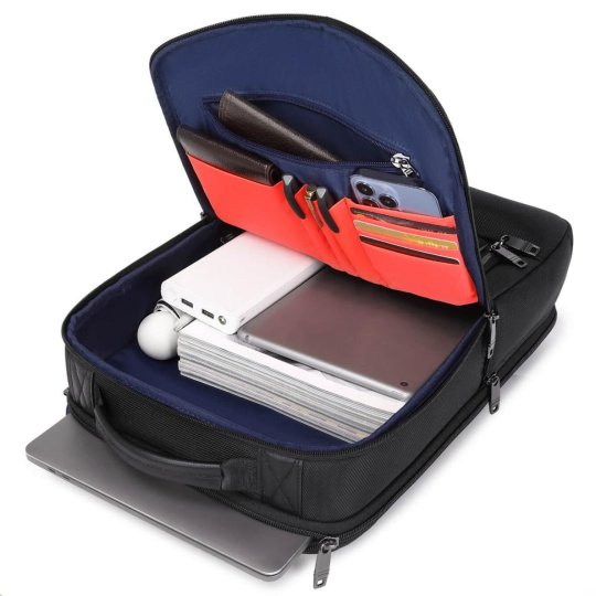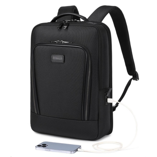 MYBALO ASTON Perfektní volba pro minimalisty s dobrým vkusem 6 ikon: - Nejtenčí batoh - Elegantní - Kapsa na notebook do 15,6" - Kapsa na tablet do 9" - Otevírání o 180 stupňů - USB a USB-C port - Drží tvar - Voděodolný - Skryté kapsy Elegantní a minimalistický Jedná se o velmi elegantní a minimalistický batoh. S tímto parťákem neuděláte chybu při běžném nošení do města, ani na důležité schůzce. Tenký batoh MYBALO Aston je batoh s vůbec nejmenší hloubkou z naší nabídky. Díky tomu působí elegantně a minimalisticky, ale i přesto se do něj vejdou všechny vaše nezbytnosti. Kvalitní voděodolný materiál, dlouhá životnost Kvalitní umělá kůže zajišťuje trvanlivost a odolnost batohu proti vodě a opotřebení. MYBALO Aston tak bude vaším společníkem opravdu dlouho. Drží tvar Batoh si zachovává svůj tvar také v případě, že jej budete mít úplně prázdný. Vestavěný USB a USB-C port Nabíjejte svá elektronická zařízení kdekoli a kdykoli díky vestavěnému USB a USB-C portu. Popruh k uchycení na kufr Cestujte pohodlně. Kdykoli chcete mít volná záda, jednoduše připevněte batoh na rukojeť svého kufru. Pohodlné polstrování Užijte si komfortní nošení díky kvalitnímu a prodyšnému polstrování ramenních popruhů a zádové části. Další praktické kapsy Zorganizujte si pohodlně a snadno své věci díky množství vychytaných kapes. Skryté kapsy V zádové části a na ramenním popruhu najdete skryté kapsy pro bezpečné uložení cenností. Vnitřní kapsy Vnitřní kapsy slouží pro snadnou organizaci všech vašich věcí. Přední kapsa Přední kapsa je určena pro věci, které chcete mít rychle a snadno po ruce. Parametry: - Rozměry: 46 x 30 x 9 cm - Objem: 11 l - Hmotnost: 1,19 kg - Kapsa na notebook: Ano (do vel. 15,6") - Kapsa na tablet: Ano (do vel. 9") - USB port: Ano - Voděodolnost: Ano - Hlavní materiál: Ekokůže + Polyester - Podšívka: Polyester - Barva: Černá