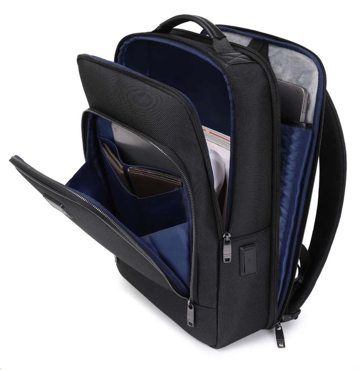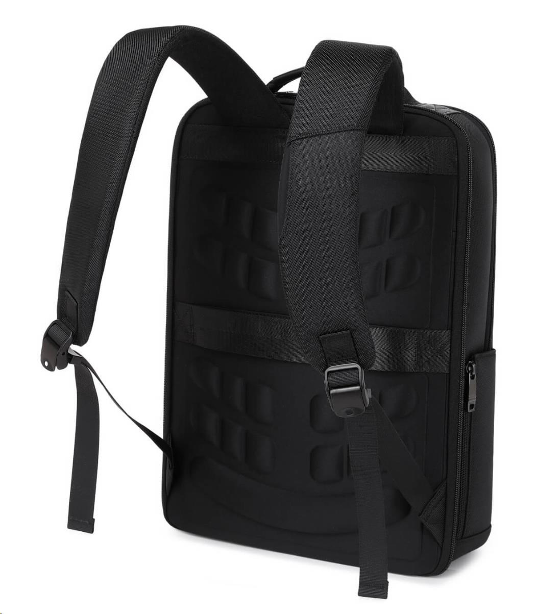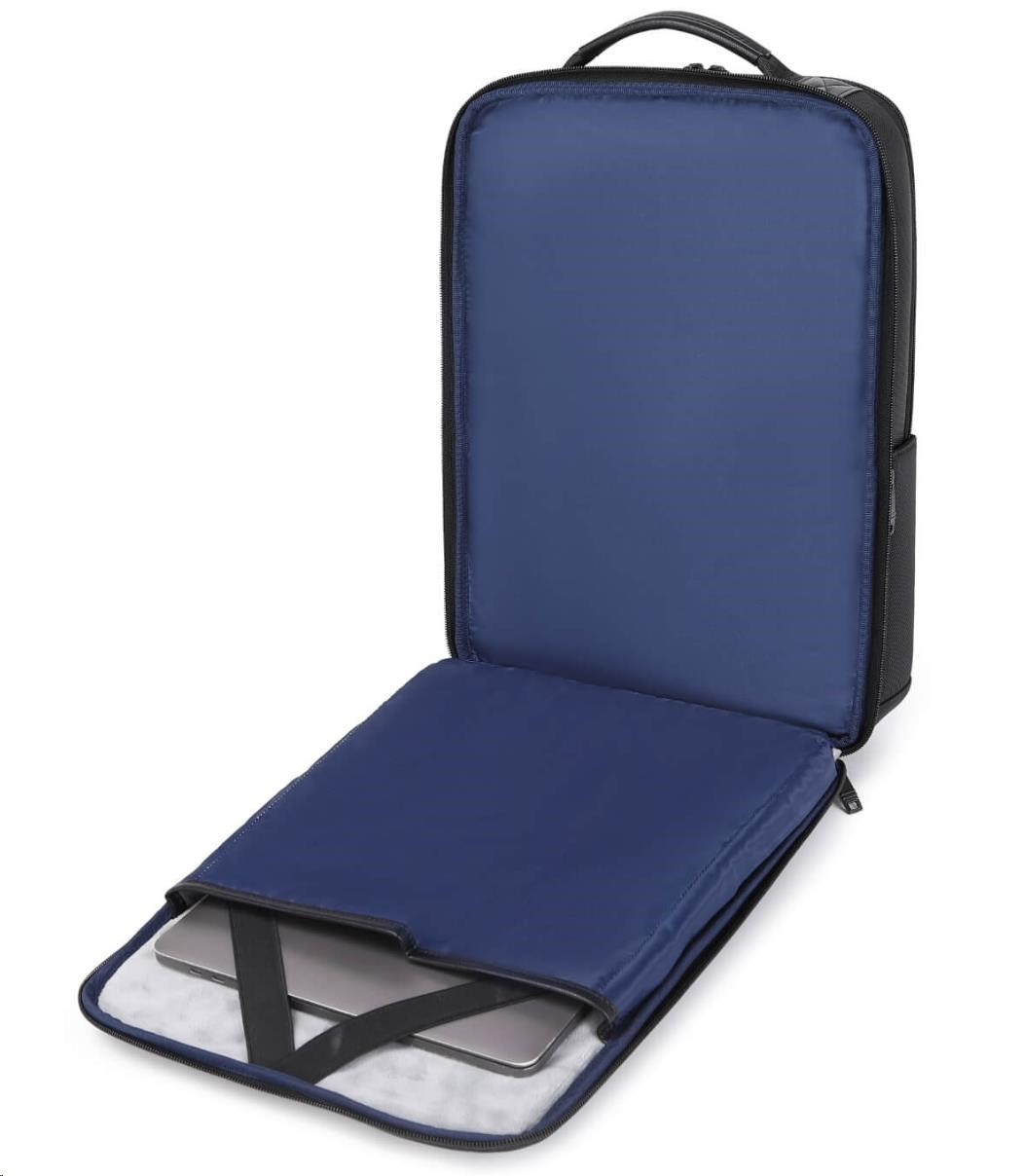 MYBALO ASTON Perfektní volba pro minimalisty s dobrým vkusem 6 ikon: - Nejtenčí batoh - Elegantní - Kapsa na notebook do 15,6" - Kapsa na tablet do 9" - Otevírání o 180 stupňů - USB a USB-C port - Drží tvar - Voděodolný - Skryté kapsy Elegantní a minimalistický Jedná se o velmi elegantní a minimalistický batoh. S tímto parťákem neuděláte chybu při běžném nošení do města, ani na důležité schůzce. Tenký batoh MYBALO Aston je batoh s vůbec nejmenší hloubkou z naší nabídky. Díky tomu působí elegantně a minimalisticky, ale i přesto se do něj vejdou všechny vaše nezbytnosti. Kvalitní voděodolný materiál, dlouhá životnost Kvalitní umělá kůže zajišťuje trvanlivost a odolnost batohu proti vodě a opotřebení. MYBALO Aston tak bude vaším společníkem opravdu dlouho. Drží tvar Batoh si zachovává svůj tvar také v případě, že jej budete mít úplně prázdný. Vestavěný USB a USB-C port Nabíjejte svá elektronická zařízení kdekoli a kdykoli díky vestavěnému USB a USB-C portu. Popruh k uchycení na kufr Cestujte pohodlně. Kdykoli chcete mít volná záda, jednoduše připevněte batoh na rukojeť svého kufru. Pohodlné polstrování Užijte si komfortní nošení díky kvalitnímu a prodyšnému polstrování ramenních popruhů a zádové části. Další praktické kapsy Zorganizujte si pohodlně a snadno své věci díky množství vychytaných kapes. Skryté kapsy V zádové části a na ramenním popruhu najdete skryté kapsy pro bezpečné uložení cenností. Vnitřní kapsy Vnitřní kapsy slouží pro snadnou organizaci všech vašich věcí. Přední kapsa Přední kapsa je určena pro věci, které chcete mít rychle a snadno po ruce. Parametry: - Rozměry: 46 x 30 x 9 cm - Objem: 11 l - Hmotnost: 1,19 kg - Kapsa na notebook: Ano (do vel. 15,6") - Kapsa na tablet: Ano (do vel. 9") - USB port: Ano - Voděodolnost: Ano - Hlavní materiál: Ekokůže + Polyester - Podšívka: Polyester - Barva: Černá.