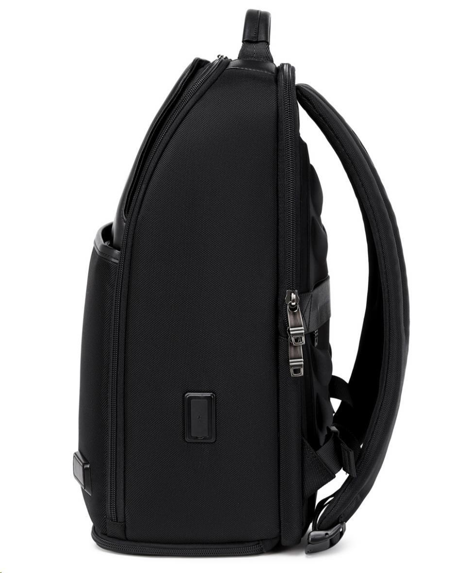 MYBALO ASTON Perfektní volba pro minimalisty s dobrým vkusem 6 ikon: - Nejtenčí batoh - Elegantní - Kapsa na notebook do 15,6" - Kapsa na tablet do 9" - Otevírání o 180 stupňů - USB a USB-C port - Drží tvar - Voděodolný - Skryté kapsy Elegantní a minimalistický Jedná se o velmi elegantní a minimalistický batoh. S tímto parťákem neuděláte chybu při běžném nošení do města, ani na důležité schůzce. Tenký batoh MYBALO Aston je batoh s vůbec nejmenší hloubkou z naší nabídky. Díky tomu působí elegantně a minimalisticky, ale i přesto se do něj vejdou všechny vaše nezbytnosti. Kvalitní voděodolný materiál, dlouhá životnost Kvalitní umělá kůže zajišťuje trvanlivost a odolnost batohu proti vodě a opotřebení. MYBALO Aston tak bude vaším společníkem opravdu dlouho. Drží tvar Batoh si zachovává svůj tvar také v případě, že jej budete mít úplně prázdný. Vestavěný USB a USB-C port Nabíjejte svá elektronická zařízení kdekoli a kdykoli díky vestavěnému USB a USB-C portu. Popruh k uchycení na kufr Cestujte pohodlně. Kdykoli chcete mít volná záda, jednoduše připevněte batoh na rukojeť svého kufru. Pohodlné polstrování Užijte si komfortní nošení díky kvalitnímu a prodyšnému polstrování ramenních popruhů a zádové části. Další praktické kapsy Zorganizujte si pohodlně a snadno své věci díky množství vychytaných kapes. Skryté kapsy V zádové části a na ramenním popruhu najdete skryté kapsy pro bezpečné uložení cenností. Vnitřní kapsy Vnitřní kapsy slouží pro snadnou organizaci všech vašich věcí. Přední kapsa Přední kapsa je určena pro věci, které chcete mít rychle a snadno po ruce. Parametry: - Rozměry: 46 x 30 x 9 cm - Objem: 11 l - Hmotnost: 1,19 kg - Kapsa na notebook: Ano (do vel. 15,6") - Kapsa na tablet: Ano (do vel. 9") - USB port: Ano - Voděodolnost: Ano - Hlavní materiál: Ekokůže + Polyester - Podšívka: Polyester - Barva: Černá.