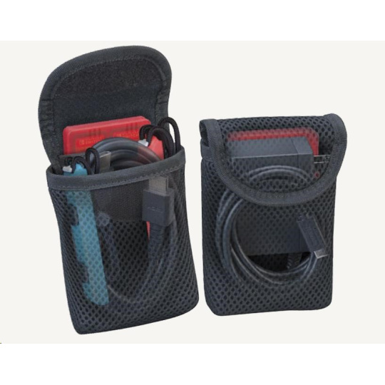 • Dve vyberateľné sieťované vrecká pojmú napájací adaptér s káblom, prepájací HDMI kábel, náramky na zápästie pre ovládače Joy-Con 2 a priložené plastové púzdra pre herné a microSD karty.
