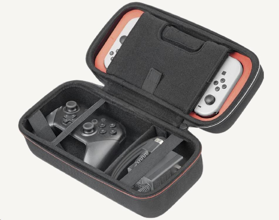 • Väčšie pevné prepravné puzdro pre hernú konzolu Nintendo Switch 2, do ktorého si okrem konzoly môžete uložiť aj základné príslušenstvo. Kompatibilné tiež s konzolami Switch a Switch – OLED Model, vrátane ich príslušenstva.