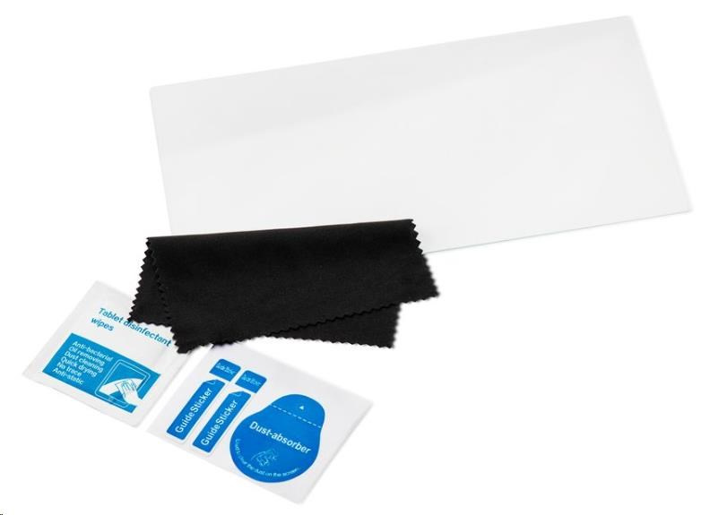 - Súčasťou balenia je čistiaca handrička, dva dezinfekčné vlhčené obrúsky, dve lepítka na odstránenie prachu a nálepky uľahčujúce aplikáciu skla.