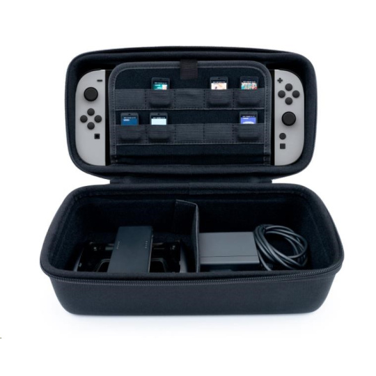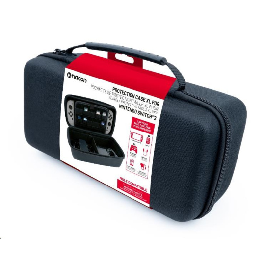 Toto veľké ochranné puzdro od spoločnosti Nacon navrhnuté na mieru pre hernú konzolu Nintendo Switch 2 ocení každý hráč, ktorému nestačí menšie prepravné puzdro určené na prenášanie konzoly so základným príslušenstvom. Na rozdiel od neho ponúka toto väčšie puzdro dostatok priestoru nielen pre konzolu a napájací adaptér, ale aj pre HDMI kábel a držiak Joy-Con 2 Grip alebo ovládač Nintendo Switch 2 Pro Controller, prípadne dvojicu ďalších ovládačov Joy-Con 2. Vzhľadom na väčšie rozmery obsahuje toto puzdro aj dodatočné mäkké vypchávky, ktoré pri cestách ešte lepšie ochrání konzolu aj všetko uložené príslušenstvo. Na spodnej strane veľkého oddelenia chrániaceho obrazovku konzoly pred poškriabaním je navyše desať priehradiek na uloženie kariet s vašimi obľúbenými hrami. Puzdro je zároveň kompatibilné s hernými konzolami Switch, Switch Lite aj Switch – OLED Model.