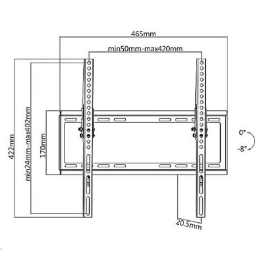 Náklopný držiak TV Fiber Mounts F7M74 Sklopný držiak na televíziu s hmotnosťou až 35kg a podporou VESA 75x75 až 400x400 Univerzálny sklopný držiak na zavesenie všetkých typov televízorov - LCD, LED, plazmové, smart, 3D, prehnuté aj OLED a QLED.. Po zavesení televízie na držiak je možné obrazovku mierne nakloniť až o 8° smerom nadol. Držiak má oceľovú konštrukciu, ktorú je možné použiť na televízie s hmotnosťou až 35kg. Podporuje zavesenie všetkých televízorov s VESA štandardom 75x75 až 400x400. Farba čierna. Záruka 10 rokov. Držiak dodávame vrátane všetkého instalačného materiálu - hmoždinky, skrutky, sada skrutiek a podložiek. Lacný držiak na TV s naklopením Fiber Mounts F7M74 Technické údaje: nosnosť 35kg podporuje VESA štandardy 75x75 až 400x400 ideálny na TV s uhlopriečkou 19" až 55" univerzálny, zavesenie všetkých typov televízorov možnosť naklonenia obrazovky smerom nadol od 0° do -8° vzdialenosť televízie od steny 21mm je naozaj malá, ale dostatočná pre spoľahlivé odvetrávanie konštrukcia držiaku je oceľová zabezpečenie televízora proti vysadeniu - 2x skrutka rozmer držiaka pre uchytenie na stenu 465x170mm farebné prevedenie čierne záruka 10 rokov Držiak TV podporuje VESA štandardy pre zavesenie: VESA 75x75 VESA 100x100 VESA 200x100 a 100x200 VESA 200x200 VESA 300x200 a 200x300 VESA 300x300 VESA 400x200 a 200x400 VESA 400x300 a 300x400 VESA 400x400