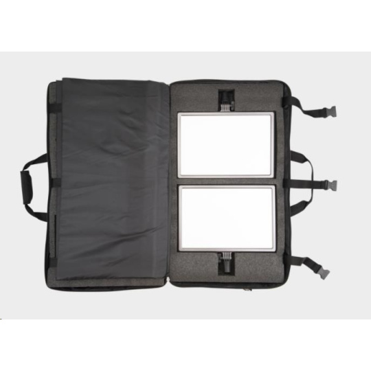 Sada 2 LED svetelných panelov Nanlite LumiPad 25. Sada obsahuje aj 2 statívy, 2 rukoväte a puzdro na prenášanie.