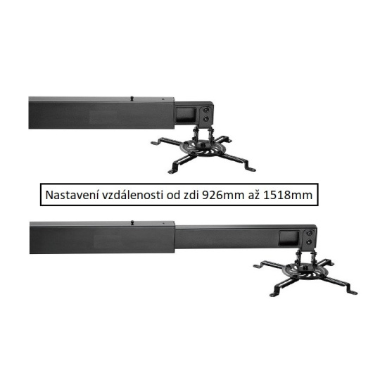 Nástenný držiak na projektory Fiber Mounts M9C45    Nástenný držiak na projektor, nastavenie vzdialenosti od steny 926-1518mm, otočný +/-180°, sklápací +/-15°, skryté vedenie káblov, nosnosť 15kg    Kvalitný nástenný držiak na projektor. Nastaviteľná vzdialenosť od steny 926mm až 1518mm, naklápanie do strán +/- 15°, otáčanie do strán +/- 180°, univerzálny úchyt s roztečou 54mm až 320mm na 3 alebo 4 skrutky umožňuje uchytenie takmer všetkých projektorov, nosnosť 15kg. Držiak má systém pre skryté vedenie káblov, inštalácia a nastavenie sú veľmi jednoduché. Nástenná inštalačná plocha o rozmeroch 505x269mm zabezpečuje výborné rozloženie hmotnosti a spoľahlivé uchytenie na stenu.      Nástenný držiak na projektory s krátkou projekčnou vzdialenosťou Fiber Mounts M9C45    Technické údaje:  nosnosť 15kg univerzálny, rozteč otvorov pre uchytenie 54-320mm uchytenie projektora na 3 alebo 4 skrutky nastaviteľná vzdialenosť od steny 926-1518mm naklápanie do strán +/- 15° otáčanie do strán +/- 180° nástenná inštalačná plocha o rozmeroch 505x269mm systém pre skryté vedenie káblov kvalitná kovová konštrukcia inštalačná sada skrutiek, hmoždiniek a vrutov farebné prevedenie čierne záruka 5 rokov    Systém pre ukrytie všetkých káblov, polohovanie projektora, jednoduchá inštalácia Fiber Mounts M9C45    Držiak projektora M9C45 je veľmi univerzálny, vo všeobecnosti je na neho možné zavesiť všetky projektory s hmotnosťou do 15kg. Uchytenie je možné ako na 3 tak aj na 4 skrutky - záleží od toho, ktorý typ projektora podporuje. Polohovanie je veľmi jednoduché. Vynikajúca kvalita podčiarknutá zárukou 5 rokov.
