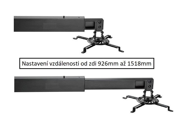 Nástenný držiak na projektory Fiber Mounts M9C45 Nástenný držiak na projektor, nastavenie vzdialenosti od steny 926-1518mm, otočný +/-180°, sklápací +/-15°, skryté vedenie káblov, nosnosť 15kg Kvalitný nástenný držiak na projektor. Nastaviteľná vzdialenosť od steny 926mm až 1518mm, naklápanie do strán +/- 15°, otáčanie do strán +/- 180°, univerzálny úchyt s roztečou 54mm až 320mm na 3 alebo 4 skrutky umožňuje uchytenie takmer všetkých projektorov, nosnosť 15kg. Držiak má systém pre skryté vedenie káblov, inštalácia a nastavenie sú veľmi jednoduché. Nástenná inštalačná plocha o rozmeroch 505x269mm zabezpečuje výborné rozloženie hmotnosti a spoľahlivé uchytenie na stenu. Nástenný držiak na projektory s krátkou projekčnou vzdialenosťou Fiber Mounts M9C45 Technické údaje: nosnosť 15kg univerzálny, rozteč otvorov pre uchytenie 54-320mm uchytenie projektora na 3 alebo 4 skrutky nastaviteľná vzdialenosť od steny 926-1518mm naklápanie do strán +/- 15° otáčanie do strán +/- 180° nástenná inštalačná plocha o rozmeroch 505x269mm systém pre skryté vedenie káblov kvalitná kovová konštrukcia inštalačná sada skrutiek, hmoždiniek a vrutov farebné prevedenie čierne záruka 5 rokov Systém pre ukrytie všetkých káblov, polohovanie projektora, jednoduchá inštalácia Fiber Mounts M9C45 Držiak projektora M9C45 je veľmi univerzálny, vo všeobecnosti je na neho možné zavesiť všetky projektory s hmotnosťou do 15kg. Uchytenie je možné ako na 3 tak aj na 4 skrutky - záleží od toho, ktorý typ projektora podporuje. Polohovanie je veľmi jednoduché. Vynikajúca kvalita podčiarknutá zárukou 5 rokov.