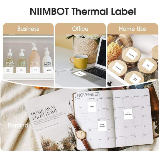 Rolka je určená pre priamu termálnu tlač pomocou kompatibilnej tlačiarne Niimbot. Štítky majú lepiacu vrstvu, ktorá účinne priľne na rôzne materiály. Perforácia medzi jednotlivými štítkami uľahčuje ich rozdelenie po tlači.