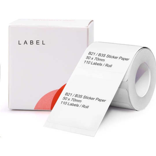 Balenie obsahuje 1x rolu bielych samolepiacich štítkov Niimbot o rozmere 50x70mm - 110ks.