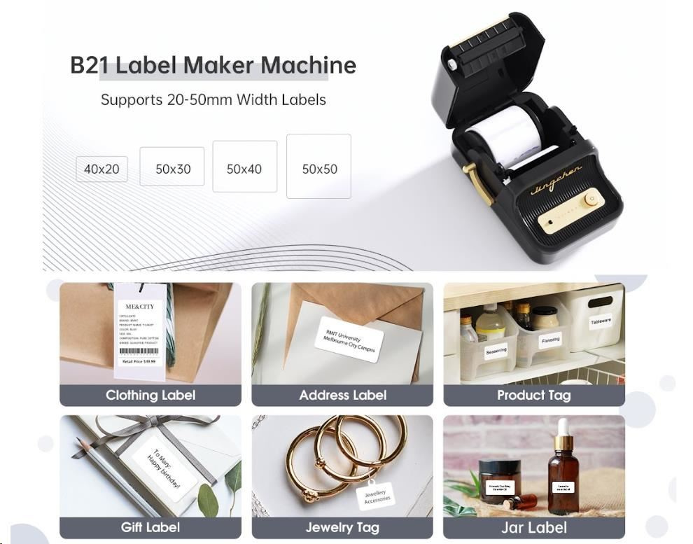 Zabudnite na zdĺhavé a komplikované procesy tlače štítkov. S NIIMBOT B21S je tlač štítkov hračkou vďaka jejakej bezdrôtovej technológii a vynikajúcim funkciám. Táto prenosná tlačiareň štítkov je vybavená dobíjacou lítiovou batériou, ktorá vám umožní tlačiť kdekoľvek a kedykoľvek budete potrebovať po dobu 4 až 5 hodín. S NIIMBOT B21S môžete jednoducho označovať veci v kancelárii, škole, obchode a na mnoho ďalších miestach. Jej kompatibilita s PC a systémami Android a iOS znamená, že môžete tlačiť priamo zo svojho smartphonu alebo tabletu, čo zabezpečuje maximálne pohodlie a efektivitu.