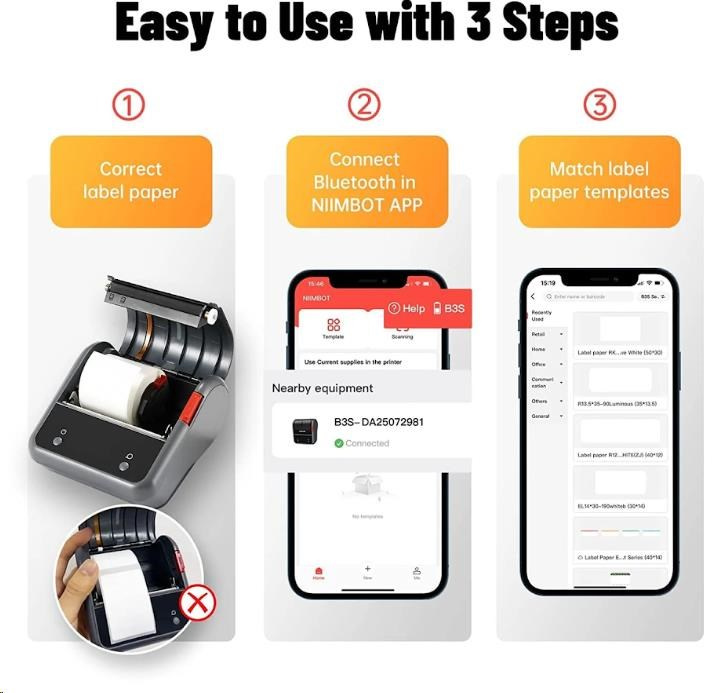 NIIMBOT B3S je tlačiareň štítkov, ktorá kombinuje výkon, pohodlie a kvalitu. S jej jednoduchou obsluhou a vynikajúcimi funkciami vás prekvapí, aká rýchla a jednoduchá je tvorba profesionálnych štítkov.