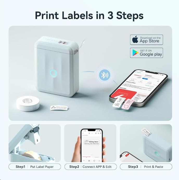 Pri navrhovaní štítku môžete použiť rôzne písma, tvary, ikony, veľkosti a formáty, aby ste si vytlačili etikety alebo štítky podľa svojej predstavy. Môžete importovať fotografie z vášho telefónu alebo obrázky z internetu, aby bol dizajn unikátnejší. Bezplatná aplikácia pre iOS alebo Android ponúka viac ako 1500 ikôn, viac ako 100 rámčekov, 19 fontov písma a umožňuje tiež tlač QR kódov. Môžete si vybrať z rôznych štýlov písma, veľkostí a formátov, aby ste si vytlačili etikety alebo štítky presne podľa svojich predstáv. Tlačiareň automaticky rozozná vložené etikety a aplikácia prispôsobí rozmery pre tlač.