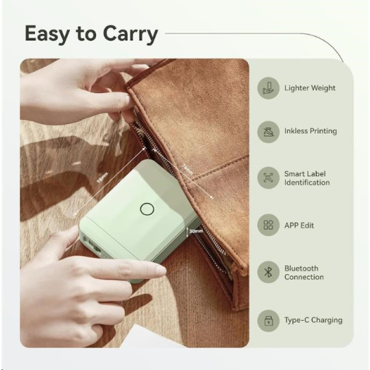 Ponúka širokú škálu možností tlače. Môžete tlačiť vertikálne aj horizontálne, tvoriť čiarové kódy a sériové čísla, čo vám umožňuje prispôsobiť etikety presne podľa svojich potrieb. S rozlíšením 203 dpi, maximálnou šírkou tlače 12 mm a kompatibilitou s 12-15mm štítkami, si vyrobíte polepy a štítky v tej najvyššej kvalite. To všetko v minimálnych rozmeroch. Tlačiareň si môžete zobrať kamkoľvek a ani si nevšimnete, že ju máte. Tlačá