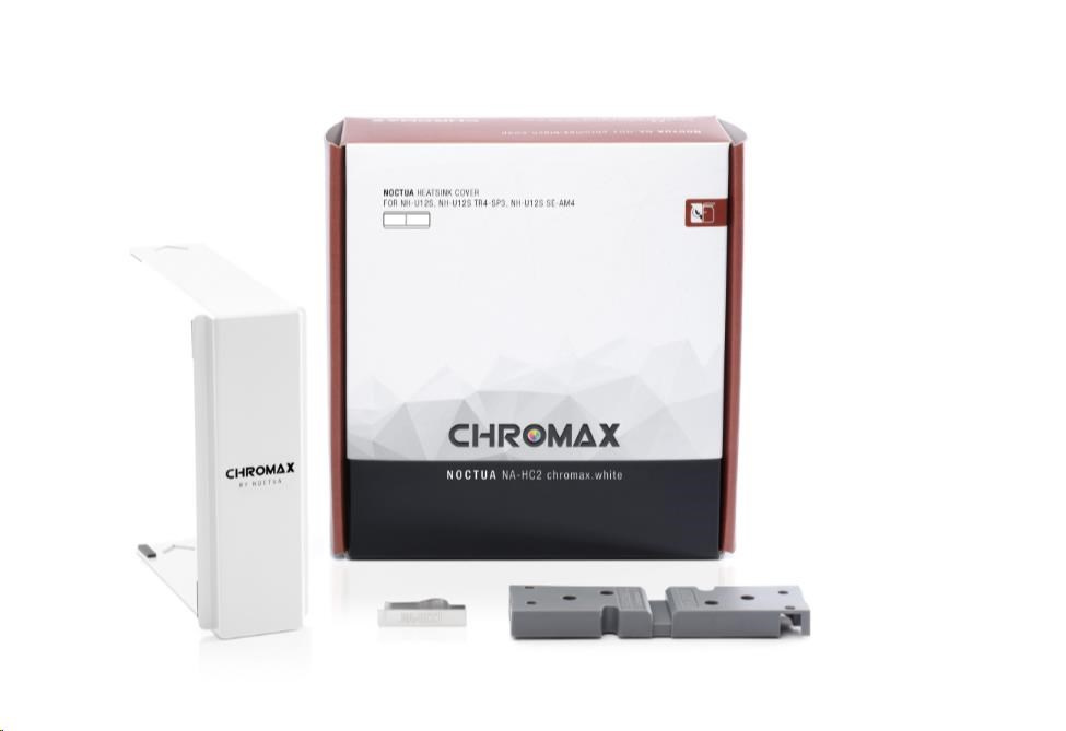 Chladičový kryt NA-HC2 chromax.white je pridružené príslušenstvo k oceňovaným chladičom CPU Noctua NH-U12S, NH-U12S TR4-SP3, NH-U12S SE-AM4 a NH-U12S DX-3647. Vyrobené z vysoko kvalitného hliníka s bielou práškovou povrchovou úpravou, umožňuje používateľom dať chladiču elegantný sniežebiely vzhľad, ktorý sa skvele hodí do celobielych alebo čiernobielych zostáv. Vďaka jednoduchej a priamej inštalácii trvá zmena vzhľadu NH-U12S len niekoľko minút a nevyžaduje ani odpojenie od CPU. V kombinácii s edíciou chromax.black.swap NF-F12, ventilátormi a ich bielymi antivibračnými podložkami vám NA-HC2 chromax.white poskytuje možnosť premeny vášho NH-U12S na čiernobiely výkonný stroj, ktorý vyzerá rovnako skvele, ako chladí.
