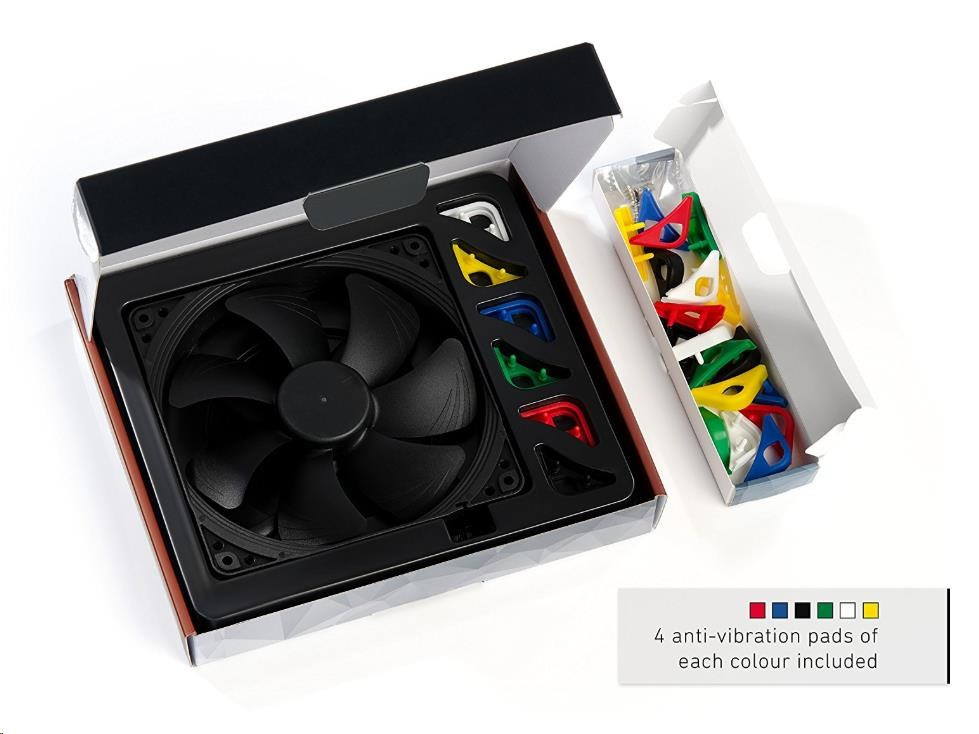 ventilátor, rozmer 140x140x25mm, max. hlučnosť 24.6dBA, prietok 140.2m3/h, 300 až 1500 otáčok, 4pin PWM, ložisko SSO2, edícia Chromax - vymeniteľné farebné antivibračné podložky