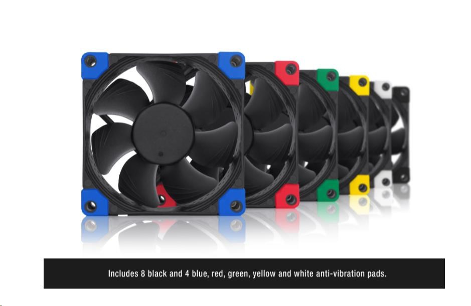 | Obsah balenia | 8x NA-AVP5 chromax.black protivibračné podložky 4x NA-AVP5 chromax.blue protivibračné podložky 4x NA-AVP5 chromax.green protivibračné podložky 4x NA-AVP5 chromax.red protivibračné podložky 4x NA-AVP5 chromax.white protivibračné podložky 4x NA-AVP5 chromax.yellow protivibračné podložky 4x fan screws |