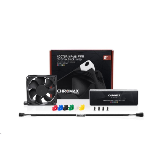 Rad NF-A8 sa zaslúžila o prednú voľbu pri výbere 80mm ventilátorov množstvom ocenení a odporúčaní od technických časopisov a stránok po celom svete. NF-A8 PWM chromax.black.swap kombinuje tichý chod tejto série a elegantný úplne čierny dizajn série chromax.black. Balenie tiež obsahuje sadu protivibračných podložiek pre tých, ktorí si radi svoj stroj farebne zladia. Kvalitu chodu a spokojnosť tiež zabezpečí SSO2 ložisko, viac ako 150000 hodín MTTF a 6 rokov záruky u výrobcu.