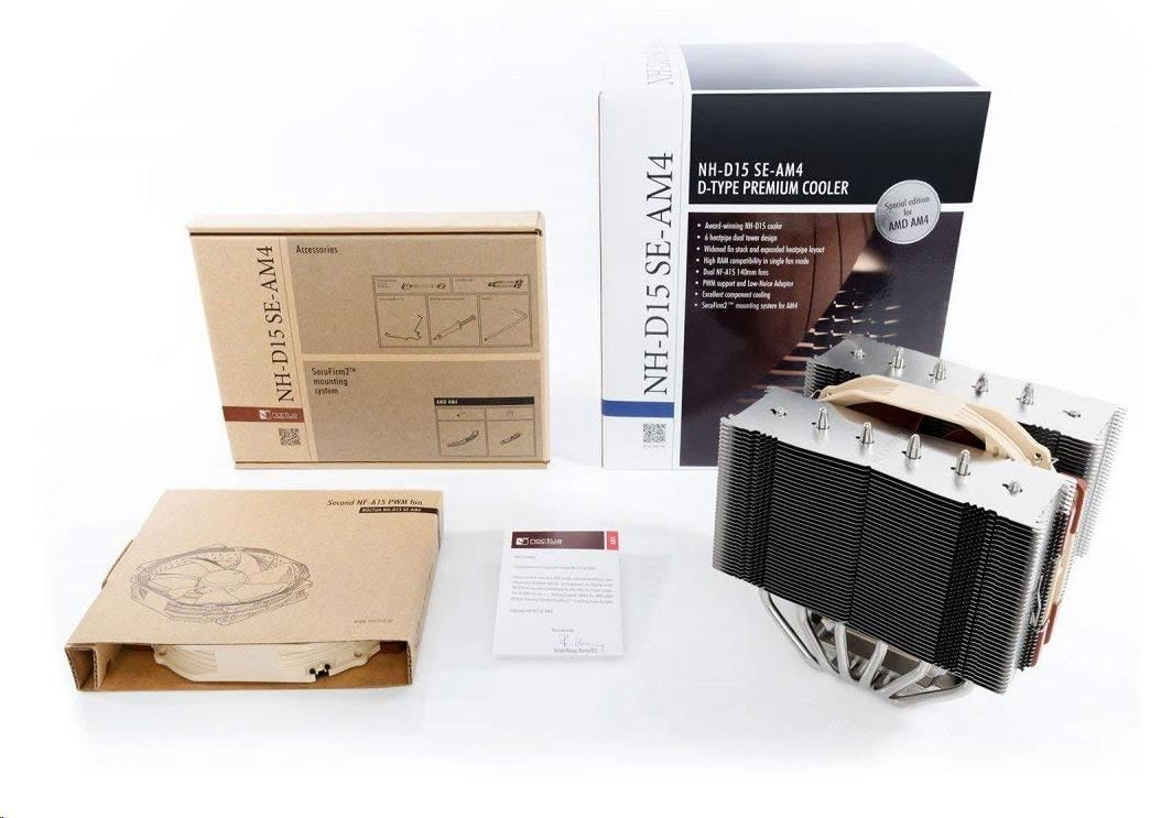 NOCTUA Chladič CPU NH-D15 SE-AM4, 2x 140mm, AM4, AM5, hnědá/stříbrná