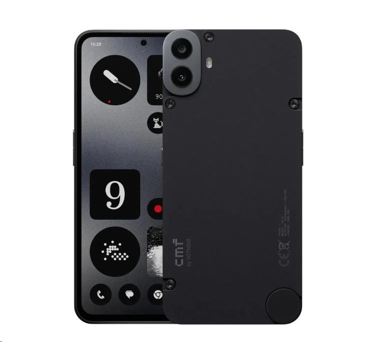 CMF Phone 1 vyniká moderním vzhledem, dostupným v černé a světle zelené barvě. Nadstavba Nothing OS 2.6, postavená na Androidu, nabízí čisté a přehledné prostředí, které je snadno ovladatelné a přizpůsobitelné vašim potřebám. Ergonomické tvary a příjemné materiály zajišťují pohodlné držení a jednoduché ovládání telefonu.