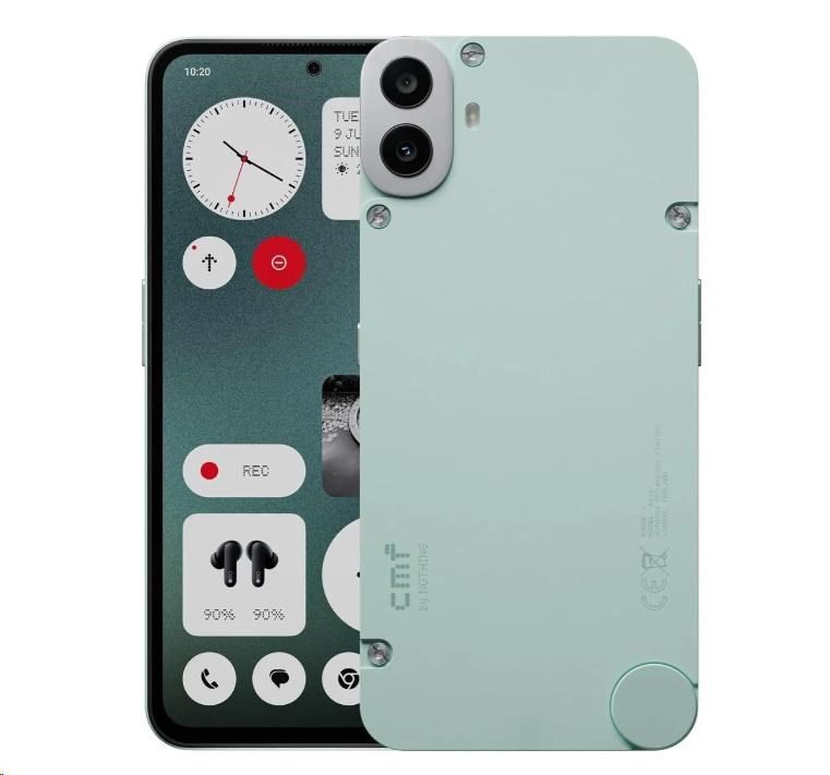 CMF Phone 1 vyniká moderním vzhledem, dostupným v černé a světle zelené barvě. Nadstavba Nothing OS 2.6, postavená na Androidu, nabízí čisté a přehledné prostředí, které je snadno ovladatelné a přizpůsobitelné vašim potřebám. Ergonomické tvary a příjemné materiály zajišťují pohodlné držení a jednoduché ovládání telefonu.