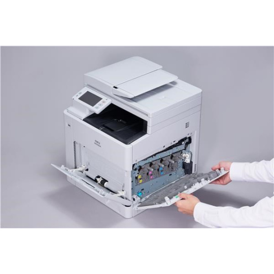 OKI MC554 je kompaktní barevné multifunkční zařízení formátu A4 navržené pro každodenní kancelářskou práci se spolehlivým výkonem a intuitivním ovládáním. Kombinuje tisk, skenování, kopírování a faxování v jednom zařízení a poskytuje rychlost barevného a černobílého tisku až 32 stran za minutu s rychlým výstupem první stránky.