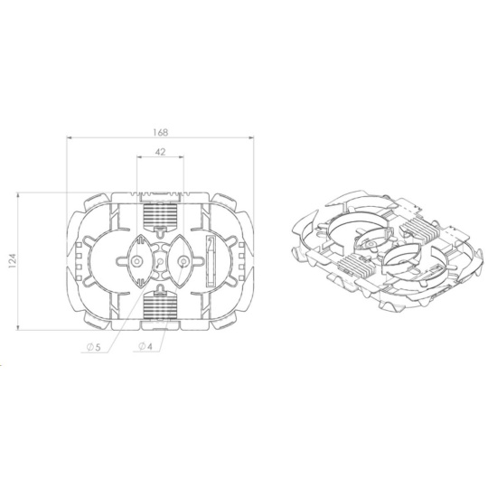 - dva hrebene s celkovou kapacitou 24 chráničov zvarov. (Uloženie a konštrukcia výklopných hrebeňov umožňuje viesť vlákna aj pod nimi