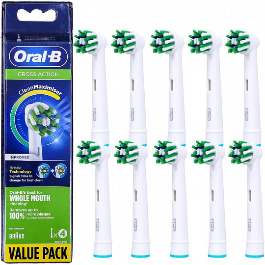 Oral-B Cross Action, náhradní hlavice 10 ks, bílé, oscilačně-rotační technologie, efektivní odstranění plaku