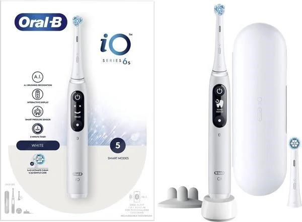 Oral-B iO Series 6s elektrický zubní kartáček, časovač, tlakový senzor, 5 programů, aplikace Oral-B, bílá