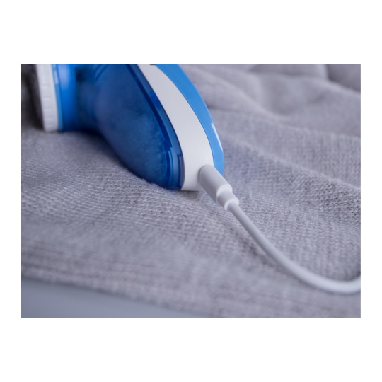 Výkonný odstraňovač žmolků, Účinne odstraňuje žmolky zo všetkých druhov tkanín, Svetelná kontrolka sieťového pripojenia, Odnímateľná priehľadná nádobka na žmolky, Vestavený dobíjací akumulátor, Dlhá výdrž akumulátora, Nabíjanie zo siete: 230V ~ 50Hz, 5 V / 0,5 - 1 A / 3 W, Napájanie: 2,4 V (NiMH / 400 mAh)