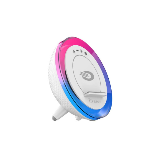 Crater-9 využijete tiež ako prenosný reproduktor, ktorý vďaka Bluetooth ľahko spárujete s mobilom, tabletom či počítačom, kde máte uložené svoje obľúbené hudobné kúsky. Či z neho znejú tanečné skladby, hudba na jogové cviky či večerné ukolébavky, Crater-9 vás milo prekvapí čistým a jasným zvukom s dynamickými bassmi o výkone 5 W (RMS). Ráno vás zvuk budíka zo smartphonu spoľahlivo preberie z toho najťažšieho spánku. Počas dňa reproduktor využijete aj pri video či konferenčných hovoroch.