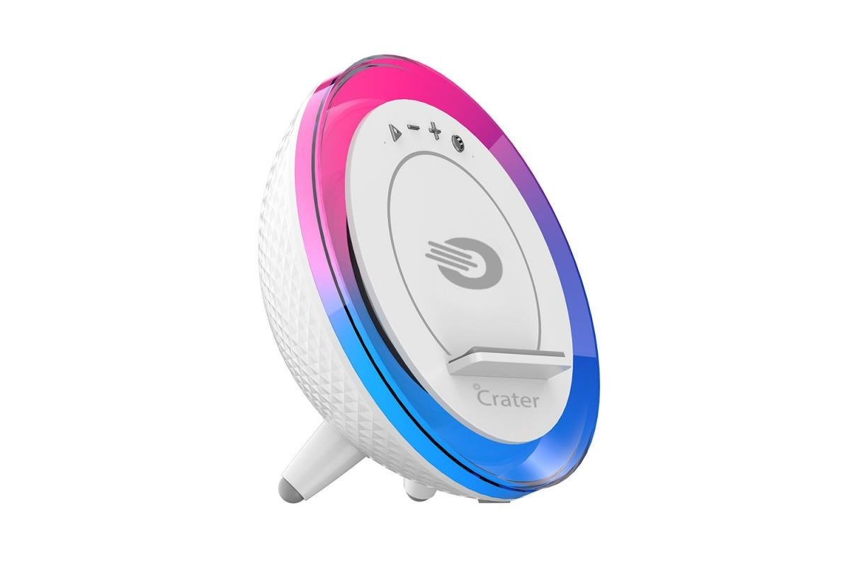 Crater-9 využijete tiež ako prenosný reproduktor, ktorý vďaka Bluetooth ľahko spárujete s mobilom, tabletom či počítačom, kde máte uložené svoje obľúbené hudobné kúsky. Či z neho znejú tanečné skladby, hudba na jogové cviky či večerné ukolébavky, Crater-9 vás milo prekvapí čistým a jasným zvukom s dynamickými bassmi o výkone 5 W (RMS). Ráno vás zvuk budíka zo smartphonu spoľahlivo preberie z toho najťažšieho spánku. Počas dňa reproduktor využijete aj pri video či konferenčných hovoroch.