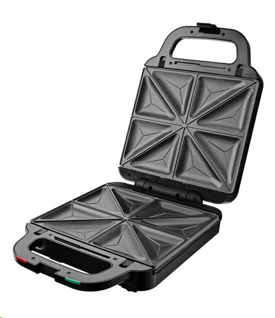 Multifunkčný toastovač 3 v 1, 3 vymeniteľné dosky s kvalitným nepřilnavým povrchom, Sendvičovač pre 4 sendviče, vafle a grilovanie, Funkcia otvoreného grilu, Tepelne izolované držadlo, Jednoduché čistenie, platne umývateľné aj v umývačke riadu, Svetelná signalizácia (napájanie, ohrev) Tepelná poistka, Napájanie: 220 - 240V~ 50Hz, 1 400 W