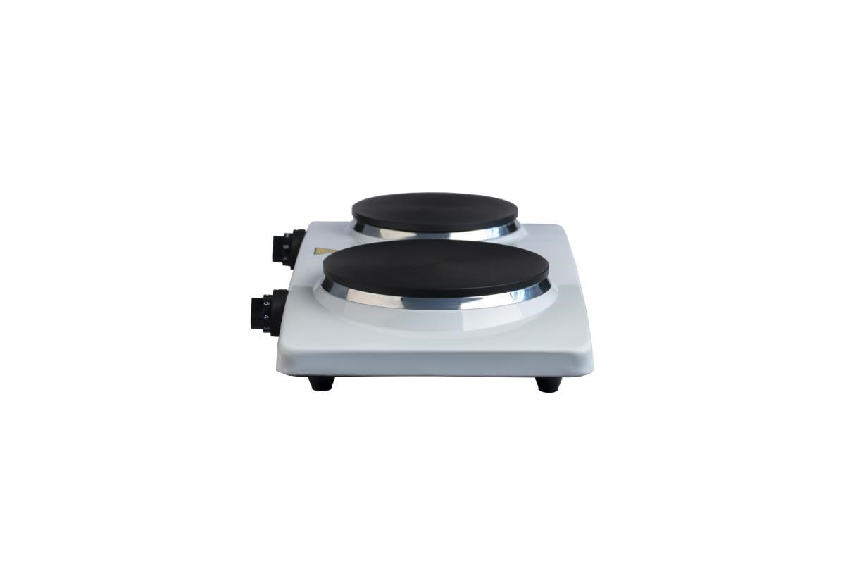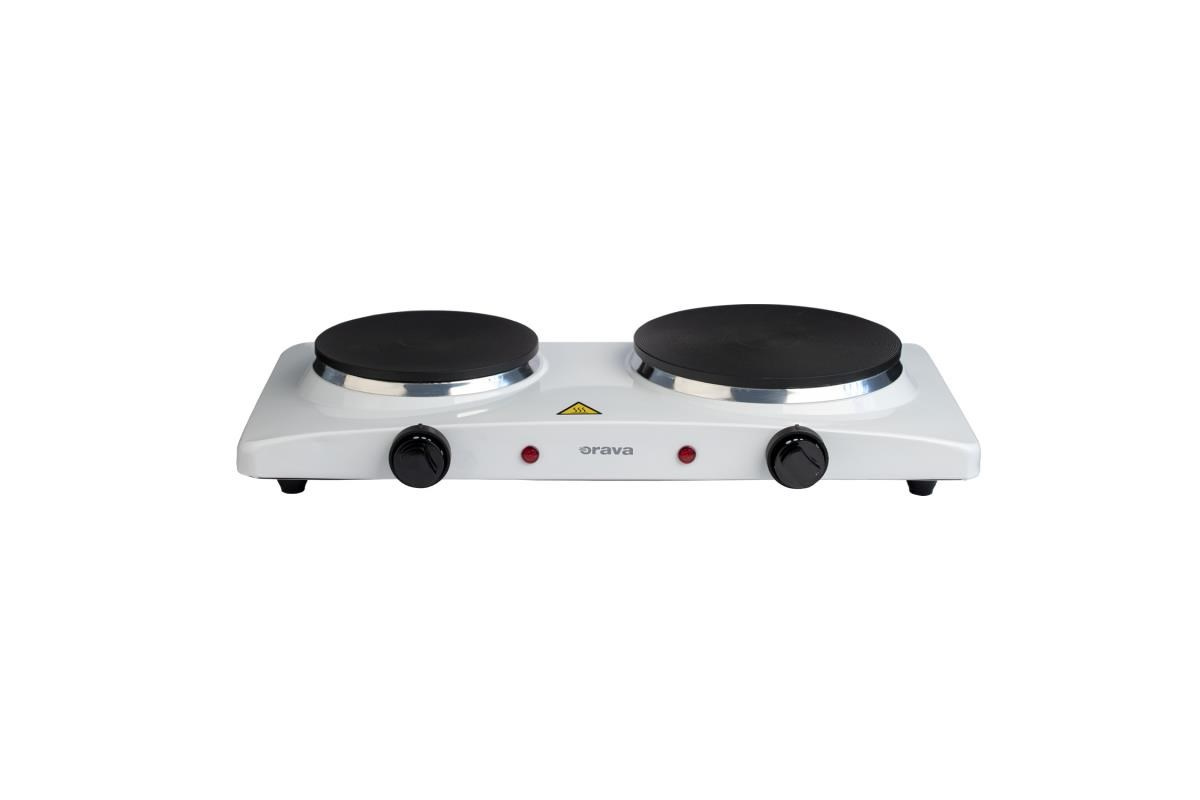 .Orava VP-91 W elektrický vařič, 1500 W, regulace teploty, 2 plotýnky, manuální ovládání, průměr 185 a 155 mm, bílá