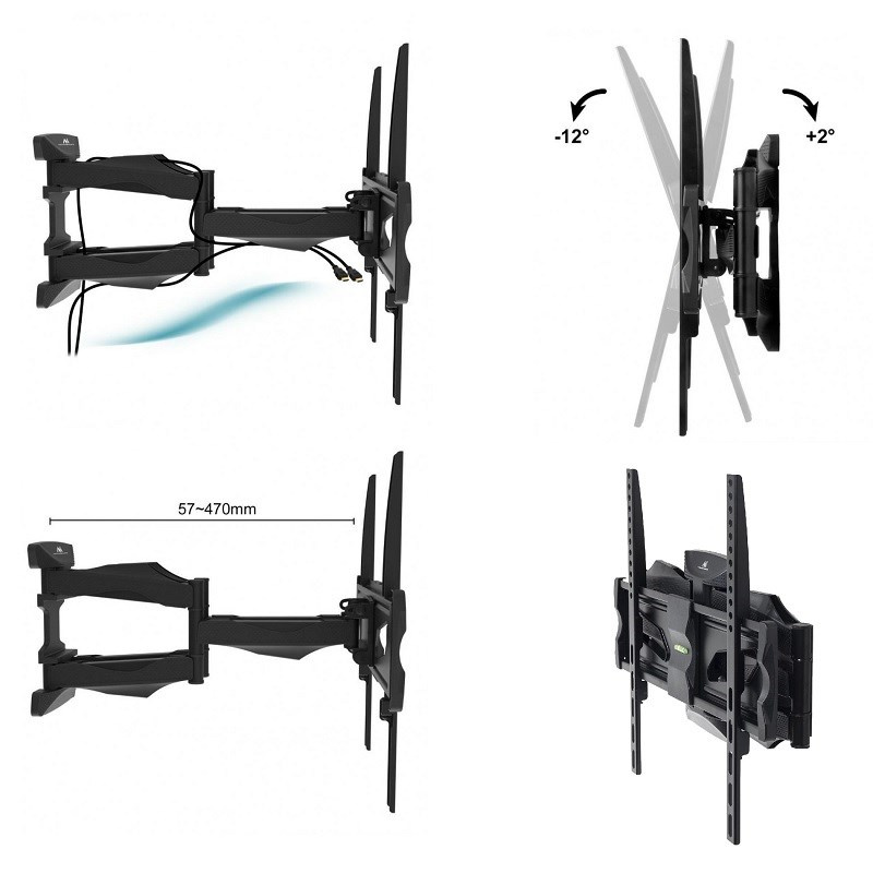 Kvalitný otočný držiak LCD Fiber Mounts M7C81 Kvalitný veľmi pekný držiak na televízie 26-60", ľahké polohovanie, otočný +/-75°, sklopný +2°/-12°, výsuvný 57-470mm, korekcia roviny +/-3°, krytky káblovej, VESA 100x100 až 400x400, nosnosť 45kg Potrebujete zavesiť televíziu na spoľahlivý a bezpečný držiak a nechcete pritom veľa míňať? Môžeme Vám odporučiť nástenný Tv držiak Fiber Mounts M7C81. Vysoká nosnosť 45kg, dve veľmi pevné ramená, zabezpečenie televízora proti vysadeniu, väčšia inštalačná plocha pre ukotvenie do steny. Držiak ponúka pohodlné polohovanie televízora - otáčanie na obe strany, naklonenie obrazovky mierne nahor alebo nadol, nastavenie vzdialenosti od steny podľa potreby. Výsuv obrazovky prebieha v osi uchytenia, preto je držiak vhodný pre ukotvenie nielen na stenu, ale aj do pripravených výklenkov alebo do obývacích stien. Ak sa Vám nepodarila montáž presne do roviny a obrazovka nie je po zavešení vo vodováhe, nie je potrebné vykonať novú inštaláciu, ľahko upravíte rovinu televízie bez nutnosti reinstalácie. Nástenný úchyt aj ramená držiaka sú opatrené dizajnovými krytkami, pod ktorými môžete skryte viesť všetky káble. Farebné prevedenie je čierne, na držiak poskytujeme predĺženú záruku na 3 roky. Pekný kvalitný nástenný držiak na televízie Fiber Mounts M7C81 Televízia držiak otočný, sklopný, výsuvný, veľmi pekný, s vedením káblov Fiber Mounts M7C81 Technické údaje: nosnosť 45kg podpora VESA štandardu 100x100 až 400x400 odporúčame na televízory s uhlopriečkou 26" až 60" vhodný na všetky typy televízorov - LCD, LED, OLED, QLED, plazma, 3D, Smart, prehnuté na TV zn. Samsung, LG, SONY, Panasonic, ECG, GoGEN, Hisense, Changhong, Hyundai, Orava, Philips ... nastaviteľná vzdialenosť od steny 57mm až 470mm otáčanie TV na obe strany +/- 75° náklon obrazovky hore aj dolu +2° až -12° korekcia roviny obrazovky +/- 3° inštalačná plocha na stenu o rozmeroch 160mm x 235mm (šírka x výška) zaistenie televízie proti vysadeniu integrovaná vodováha pre uľahčenie montáže veľmi jednoduché polohovanie bezpečná a spoľahlivá oceľová konštrukcia dizajnové kryty ramien pre skryté vedenie všetkých káblov súčasťou balenia je univerzálna inštalačná sada (skrutky, vruty, hmoždinky, podložky) farebné prevedenie čierne záruka 3 roky Držiak na LCD, LED, OLED aj QLED televízie Fiber Mounts M7C81 Držiak na tv Fiber Mounts M7C81 podporuje VESA štandardy televízií: VESA 100x100 VESA 200x100 a 100x200 VESA 200x200 VESA 300x100 a 100x300 VESA 300x200 a 200x300 VESA 300x300 VESA 400x100 a 100x400 VESA 400x200 a 200x400 VESA 400x300 a 300x400 VESA 400x400 Držiak TV Fiber Mounts M7C81 je vhodný na zavesenie všetkých typov, značiek a veľkostí TV, ktoré majú hmotnosť do 45kg a ktoré podporujú niektorý z vyššie uvedených VESA štandardov. Pri veľkosti televízie to priamo nezáleží, môžete zavesiť aj väčšie televízory za splnenia vyššie uvedených podmienok.