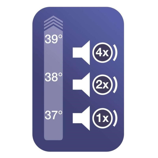 Zvuková signalizácia pomáha interpretovať nameranú hodnotu teploty. Počet zvukových pípnutí signalizuje normálnu (1 pípnutie), zvýšenú (2 pípnutia) teplotu a horúčku (4 pípnutia).