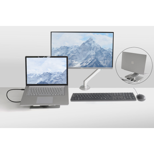 Promeňte svoj notebook v výkonnú desktopovú pracovnú stanicu s DESQ Notebook Dockom. Stačí pripojiť USB-C kábel a získate prístup k externým monitorom, klávesniciam, myšiam a ďalším perifériam. Stojan je kompatibilný s MacBookmi, notebookmi s USB Type-C, tabletmi a mobilnými telefónmi. ? Promení váš notebook v desktop PC s plynulou integráciou cez USB-C ? Plne nastaviteľný pre ergonómickú výšku a uhly ? Zdvíha obrazovku až o 28 cm pre lepší komfort pri sledovaní ? Platforma nastaviteľná až do uhla 70 ° pre dokonalú polohu obrazovky ? Ľahká konštrukcia a skladací dizajn pre ľahké prenášanie ? Výrezy v konštrukcii podporujú prúdenie vzduchu a udržiavajú notebook v chlade ? Pevná a odolná hliníková zliatina pre dlhú životnosť ? Silikónové podložky a nožičky pre stabilitu a ochranu proti sklzu S DESQ stojanom na notebook nastavíte obrazovku do ideálnej výšky, čo podporuje zdravé a ergonomické držanie tela a pomáha predchádzať bolestiam chrbta, krku a únave očí.