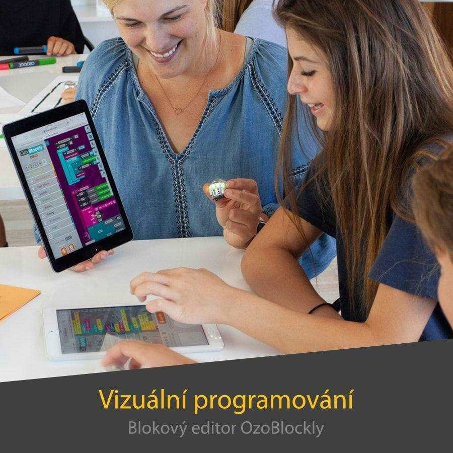 - Blokový editor OzoBlockly spustíte na ľubovoľnom prehliadači a tabletoch so systémom iOS aj Android, okrem iPadu Mini. Programovanie zvládnu aj mladší žiaci základných škôl – jednotlivé sekvencie poskladáte spôsobom drag and drop.